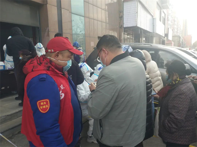 防控疫情哪里需要黨員干部,黨員干部就戰(zhàn)斗在哪里。核酸檢測(cè)是防控疫情的必要手段。3月21日早上,通利公司黨委書記、經(jīng)理黃丹準(zhǔn)備到單位上班,到小區(qū)門口發(fā)現(xiàn),小區(qū)被封了,一打聽得知,小區(qū)半夜3點(diǎn)被管控封閉。得知當(dāng)天小區(qū)做全員核酸,便通過微信向社區(qū)請(qǐng)戰(zhàn),對(duì)方負(fù)責(zé)同志告訴他非常需要志愿者,但得先做雙彩后再?zèng)Q定是否用。在等待期間,黃丹聯(lián)系了同小區(qū)的集團(tuán)同事:黃河公司的干部陳浩,以及陳浩愛人,集團(tuán)機(jī)關(guān)的張彤馨。張彤馨聽說后高興得跳了起來,立馬準(zhǔn)備上“戰(zhàn)場(chǎng)”。