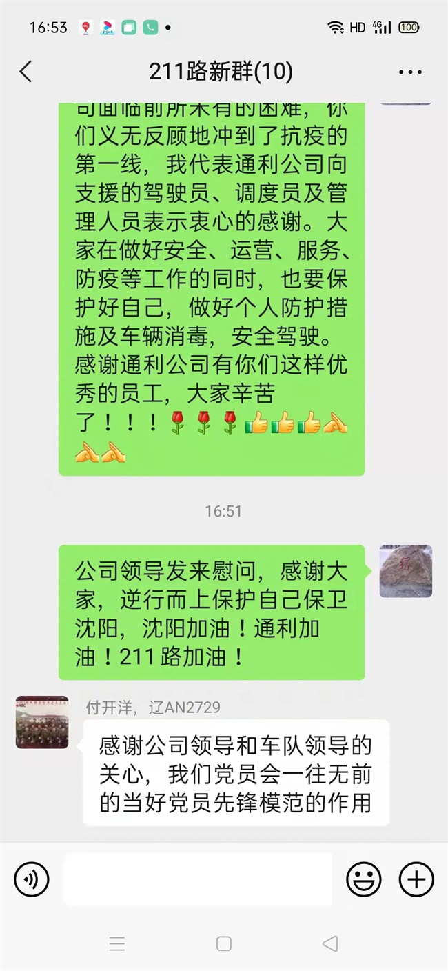 面對(duì)駕駛員的辛苦付出,公司通過微信群,向支援的駕駛員表達(dá)了公司的關(guān)心與慰問。大家說,看到公司的問候和關(guān)心,心里特別溫暖。駕駛員付開洋說:“感謝公司的關(guān)心,一定會(huì)一往無前發(fā)揮黨員先鋒模范作用。”