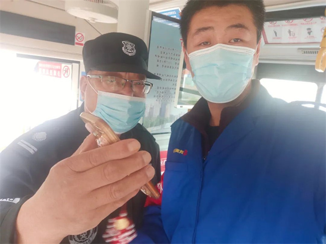 10月20日早8點左右,121路駕駛員馮志松和隨車安保員正在線路運營。當乘客通過安檢全部上車坐穩(wěn)后,車輛正常駛離車站,隨車安保員環(huán)顧車廂觀察乘客口罩佩戴等情況時,在座位上發(fā)現(xiàn)一部乘客掉落的手機。