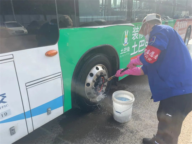 各車(chē)隊(duì)隊(duì)長(zhǎng)帶領(lǐng)駕駛員擦洗運(yùn)營(yíng)車(chē)輛,打掃車(chē)內(nèi)衛(wèi)生,駕駛員也自發(fā)加入其中,全力為乘客提供整潔舒適的乘車(chē)環(huán)境。
