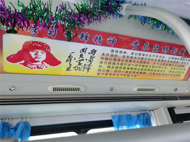 209路車(chē)隊(duì)充分利用車(chē)廂展板,在2098號(hào)單車(chē)上精心打造學(xué)習(xí)雷鋒主題文化車(chē)廂。