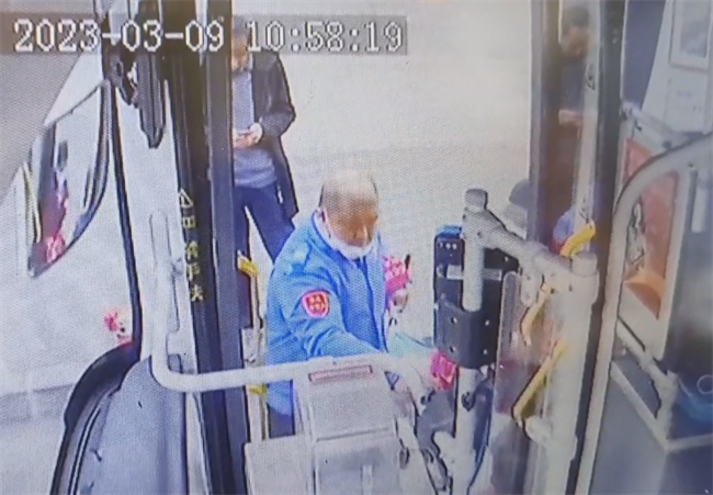 3月7日,賈清巖在艷粉新村始發(fā)站主動(dòng)幫助老人將購(gòu)物車抬上車,老人認(rèn)出了賈清巖,還沒(méi)等坐穩(wěn)就面帶笑容走向駕駛室向賈清巖表示誠(chéng)摯的感謝,賈清巖連忙起身攙扶老人回到座位。
