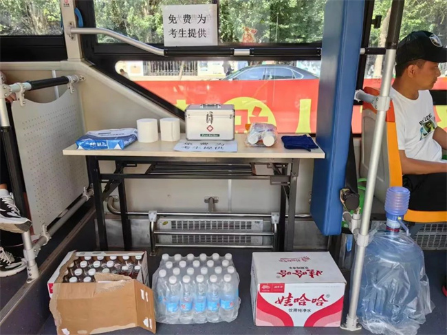 249路車隊(duì)隊(duì)長(zhǎng)說:“我們作為志愿者為大家提供力所能及的幫助,祝各位考生取得好成績(jī)?!瘪{駛員王眾說:“車隊(duì)建隊(duì)以來就有了助考的傳統(tǒng),我們?yōu)榭忌图议L(zhǎng)提供免費(fèi)礦泉水,車內(nèi)還配備了急救藥箱,藥箱里有風(fēng)油精、創(chuàng)可貼、繃帶等常見應(yīng)急藥品。為了應(yīng)對(duì)突發(fā)狀況,高考前我還特意學(xué)習(xí)了急救知識(shí)。”