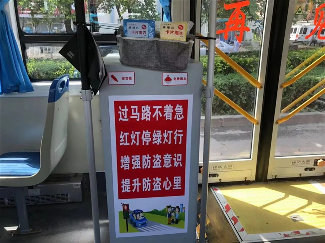 今年7月,胡影自己“裝扮”起了車廂,在業(yè)余時(shí)間購(gòu)置了便民醫(yī)藥箱、一次性雨衣、手套、口罩、留言簿以及溫馨提示語(yǔ)。胡影說(shuō):“夏天的雨經(jīng)常猝不及防,很多人出門沒帶傘,車上備些防雨用具,可以方便乘客。”