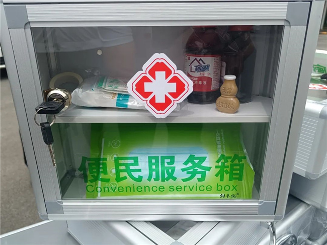 209路車隊(duì)的每臺(tái)單車上新增配置了印有“紅十字”標(biāo)志的便民服務(wù)箱,里面放置了口罩、速效救心丸、止血帶、碘伏等日常使用的各類物品。廣大乘客在乘坐公交車時(shí),一旦出現(xiàn)緊急情況,可以得到及時(shí)有效的幫助和初級(jí)救治。
