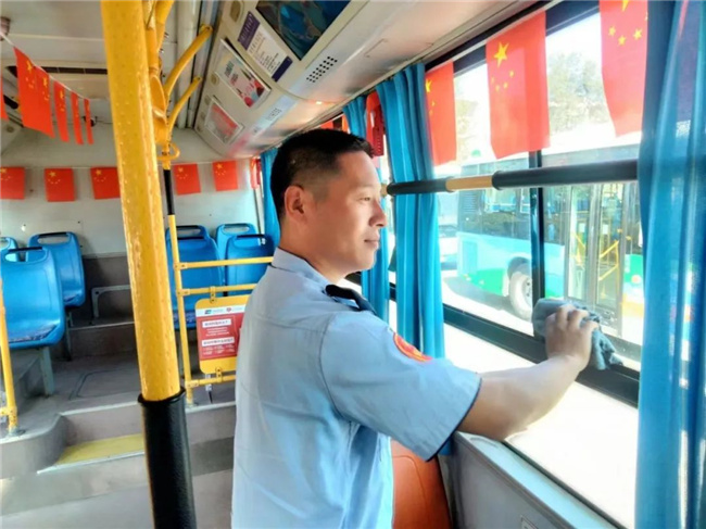 沈蘇、鑫暢公司所屬車隊精心打造“歡度國慶”主題車廂,在公交車廂內(nèi)掛滿了五星紅旗和紅色貼紙,讓乘客一踏入車廂便感受到濃厚、喜慶的節(jié)日氛圍。