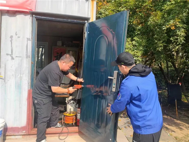 近期天氣漸漸由暖變涼,10月11日,沈蘇、鑫暢公司137路車隊(duì)對(duì)站務(wù)室的大門進(jìn)行了修理,確保駕駛員溫暖過(guò)冬。