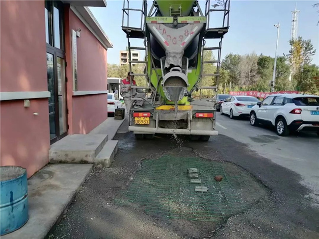為了徹底解決這個(gè)問(wèn)題,車隊(duì)租用了一臺(tái)大型水泥攪拌車,將購(gòu)買的水泥等原材料進(jìn)行了均勻攪拌,隨后,車隊(duì)管理人員和駕駛員們齊上陣,將原來(lái)的大坑填成了一個(gè)微斜的平面。