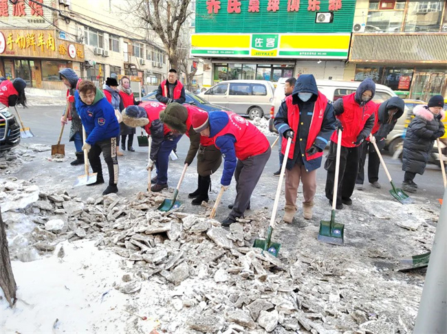 在志愿者們的帶動下,許多普通居民和沿街商戶也陸續(xù)加入到清除冰雪的隊伍之中,大家齊心協(xié)力清掃出一條條“暖心平安路”,確保了市民的安全出行,用“共掃全城雪”的實(shí)際行動,美化家園、扮靚城市、溫暖人心。