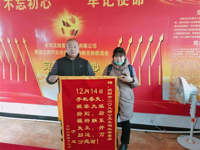 這部?jī)r(jià)值5000多元的手機(jī)失而復(fù)得,失主于女士非常開心,為表感激之情,趁著元旦假期,于女士將一面錦旗送到了209路車隊(duì)。