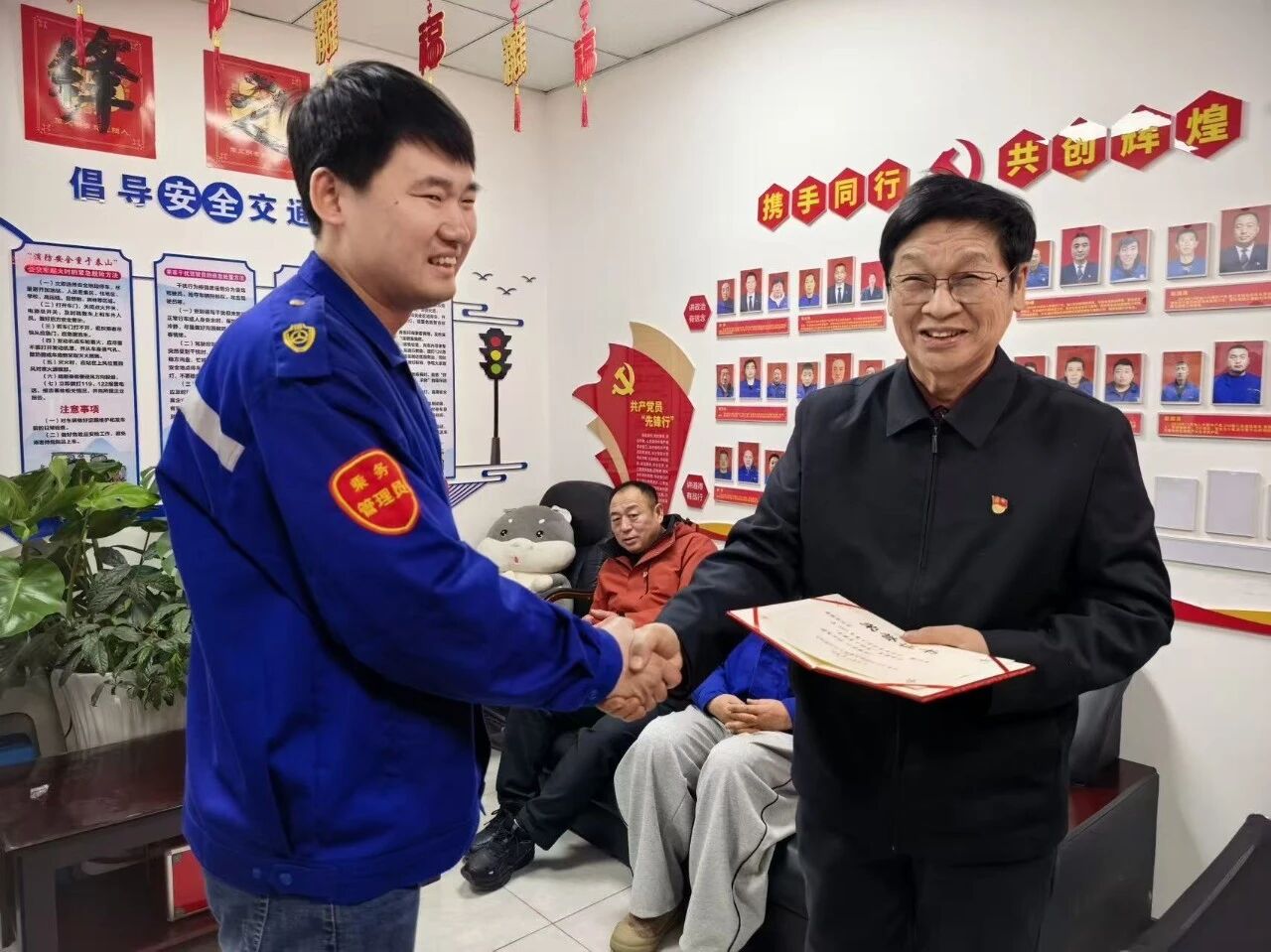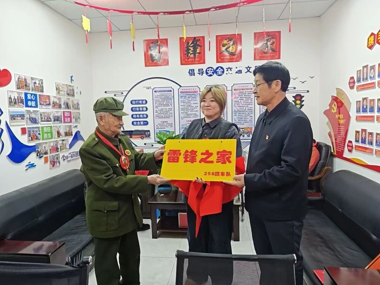 在現(xiàn)場人員的共同見證下,曲靜同志與劉樹田老同志一同為“雷鋒之家”揭牌。牌匾的正式亮相,標志著車隊常態(tài)化開展學雷鋒、踐行初心使命的活動邁入新階段。