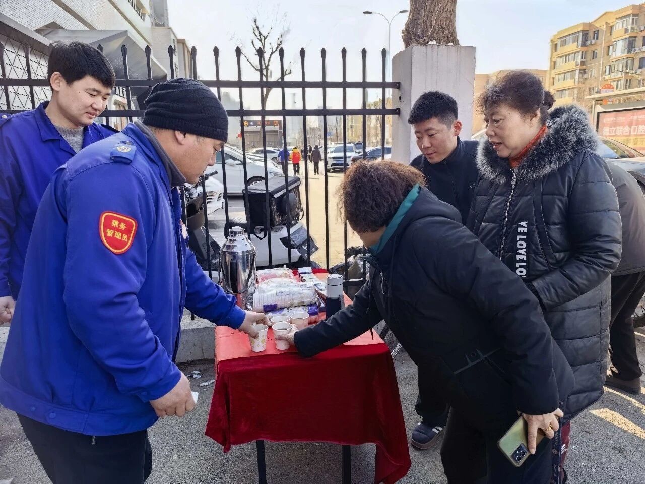 啟動儀式后,車隊同步開展了雷鋒志愿服務(wù)活動,為候車乘客提供免費熱飲等服務(wù)。