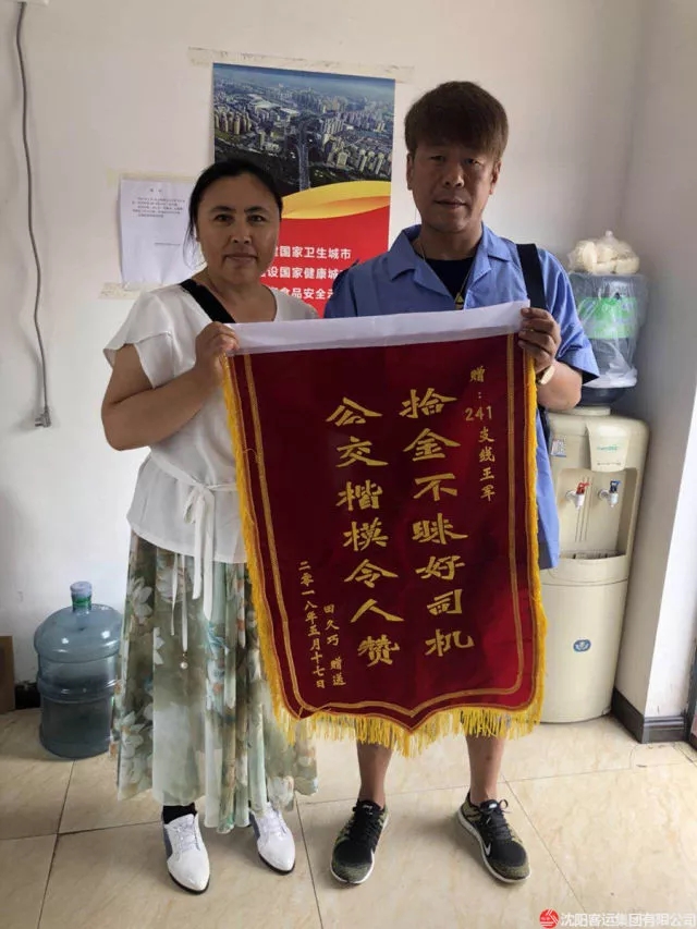 6月20日上午,乘客田久巧女士將一面錦旗送到康利公司241支線車隊(duì),當(dāng)面感謝好心駕駛員王軍。